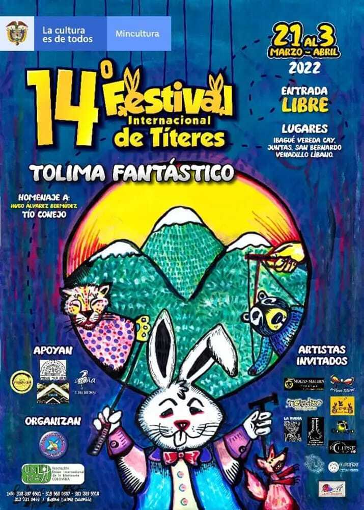 La edición 14 del Festival Internacional de Títeres se celebrará este año del 21 de marzo al 3 de abril. Con artistas invitados En esta ocasión el tema del festival es: Tolima Fantástico, junto con un homenaje especial al maestro Hugo Álvarez Hernández.